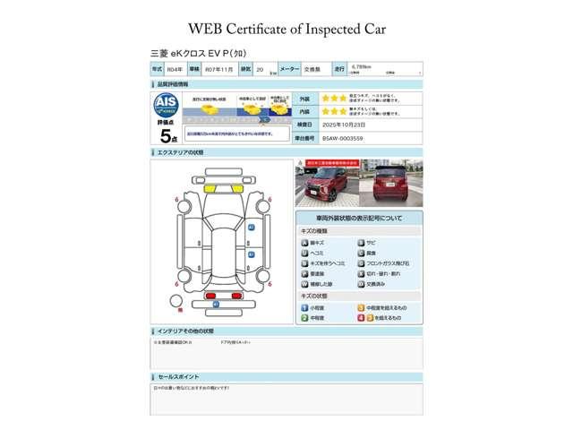 第三者評価機関「AIS社」の車両検査済み!総合評価5点(評価点はAISによるS〜Rの評価で令和7年10月現在のものです)です♪