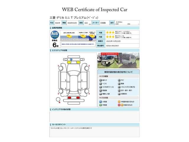 第三者評価機関「AIS社」の車両検査済み!総合評価6点(評価点はAISによるS〜Rの評価で令和7年10月現在のものです)です♪