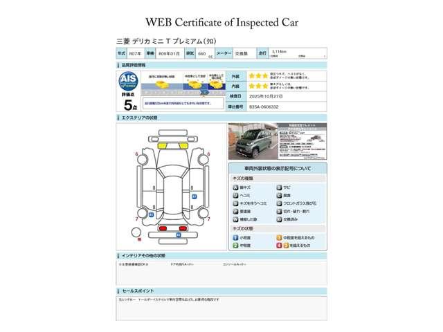 第三者評価機関「AIS社」の車両検査済み!総合評価5点(評価点はAISによるS〜Rの評価で令和7年10月現在のものです)です♪