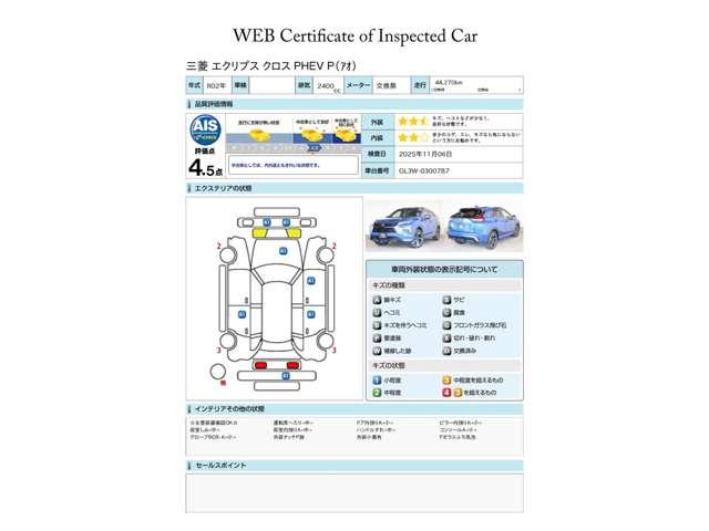 第三者評価機関「AIS社」の車両検査済み!総合評価4.5点(評価点はAISによるS〜Rの評価で令和7年11月現在のものです)です♪
