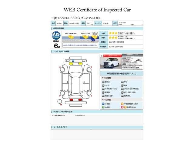 第三者評価機関「AIS社」の車両検査済み!総合評価6点(評価点はAISによるS〜Rの評価で令和7年11月現在のものです)です♪