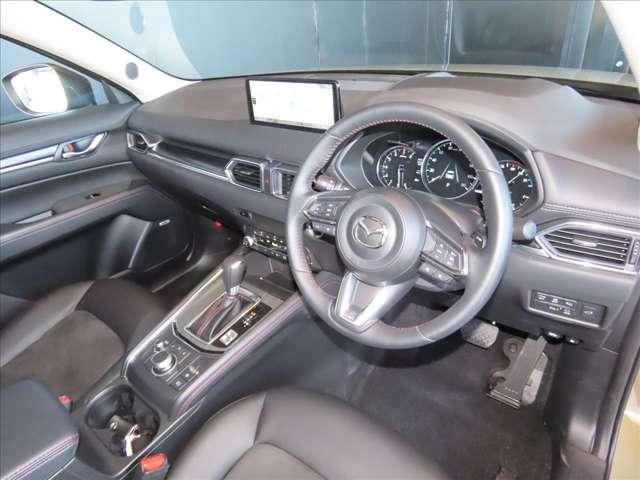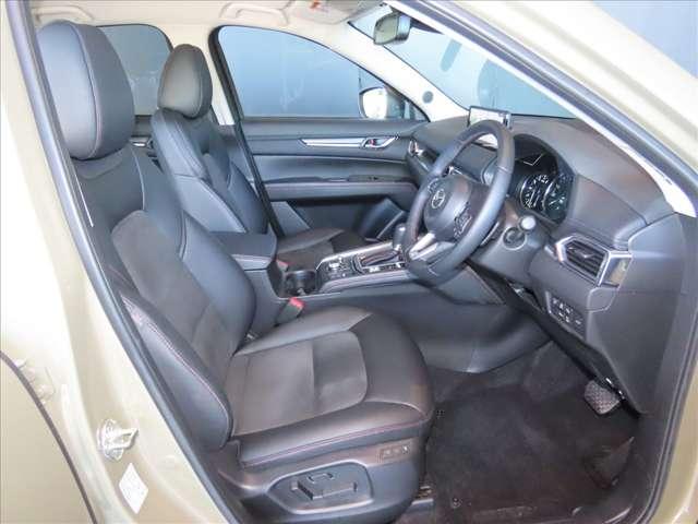 厚手のフロントシートです。少し硬めでサポート性や座り心地も良好です。また、CX-5は、ドライバーとハンドル・ペダル類が正対するようにドライバーシートが配置されています。正しい操作には重要です★☆★☆