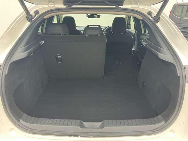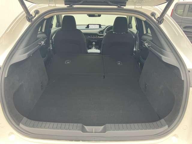 後席を全て倒して、荷物専用のスペースにした状態です。これなら長いものも積めますし、ご旅行や趣味に活用できますね。
