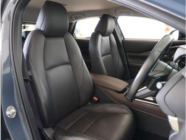 【革シート】上質な革を使用し高級感あふれる革シート。常に体に触れる部分だから、座り心地の良さにはこだわりたいですね。座っていただくと良さがわかります。