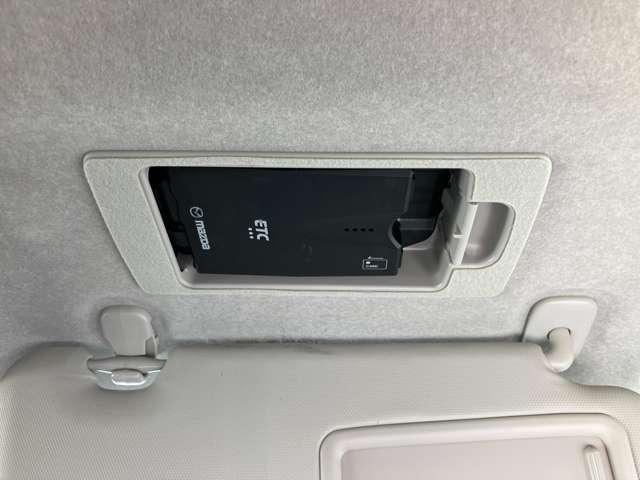 ETC車載機は運転席のバイザー裏に取り付けられております。これはマツダの特許にての取り付けで、盗難防止に役立ちますし、邪魔になる事にもなりません!