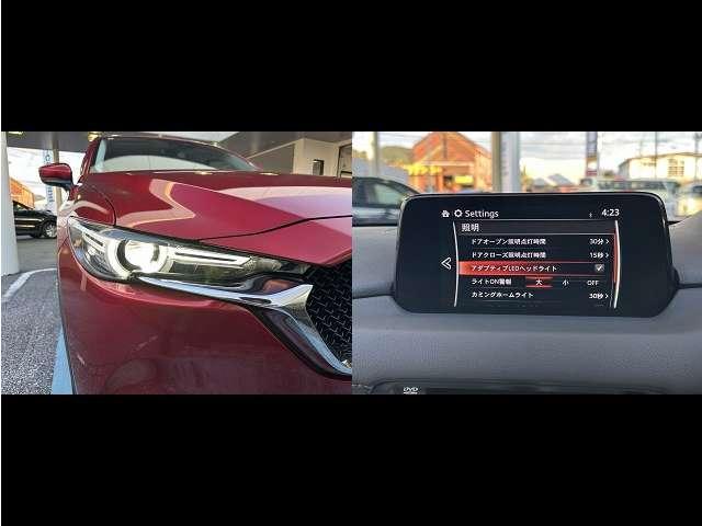 【アダプティブ・LED・ヘッドライト】 ハイ/ロー/ワイドの3種類のLEDライトを常に最適な配光に自動制御します。対向車や歩行者には照射せず、必要な部分にだけ光を当てます。