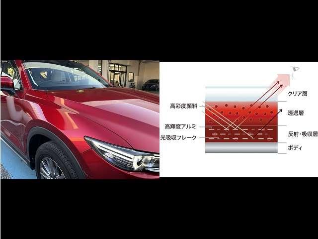 【ソウルレッドクリスタルメタリック】 生命感溢れるエネルギッシュな強さと鮮やかさ、濁りのない深みと艶感をより高い次元で両立させたボディカラーです。