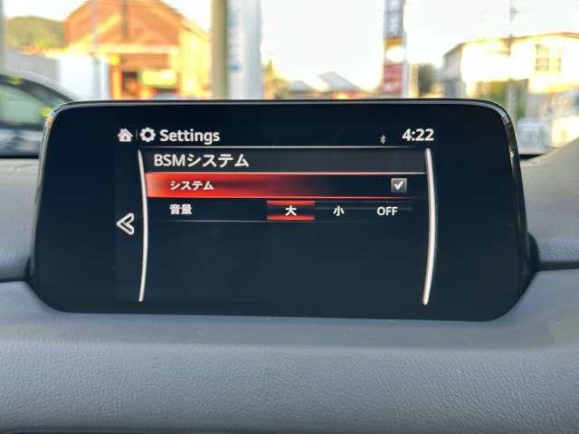 【BSM】15km/h以上での走行時、後方から接近する車両をレーダーで検知。ドアミラーの鏡面にインジケーターを点灯させて警告してくれます。