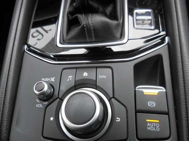 マツダコネクトを操作する為のコマンダーコントロールは、回転・チルト・プッシュ操作が可能なロータリースイッチとボタンを組み合わせたユニットです。ディスプレイに表示される全ての項目を操作できます。