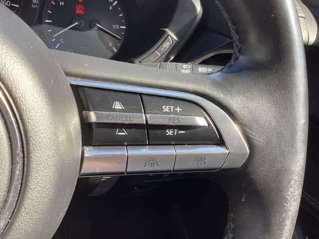 【マツダ・レーダー・クルーズ・コントロール】ハンドルに付いているボタン操作で、自動で車間距離や速度をコントロールし、長距離走行時などのドライバーの負担を軽減します。