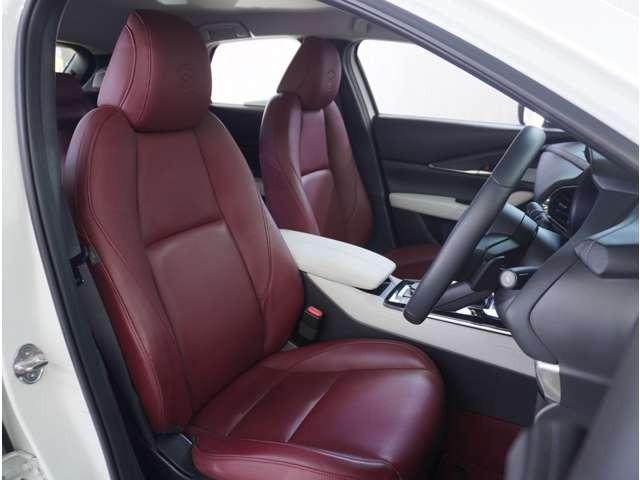 【本革シート】上質な本革を使用し高級感あふれる革シート。常に体に触れる部分だから、座り心地の良さにはこだわりたいですね。座っていただくと良さがわかります。