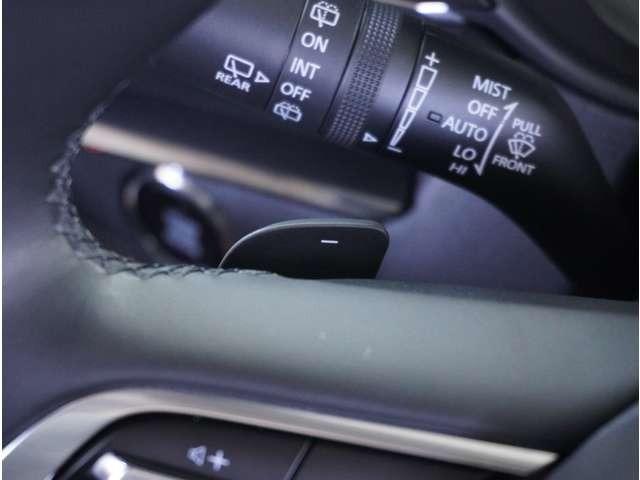 【パドルシフト】ハンドルから手を離さずに素早くシフトアップ&ダウンができるので、エンジンブレーキを使う下り坂や高速道路の合流で加速したい場面で役立ちます。