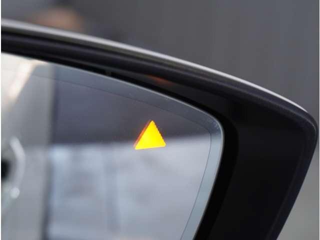 【ブラインドスポットモニタリング】走行中、ドアミラーの死角になりやすい箇所に後続車が接近するとサイドミラーのレンズに警告を表示。ドライバーに注意喚起をしてくれます。