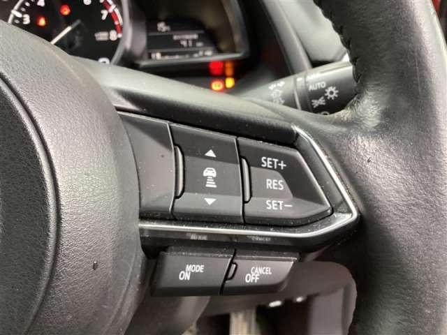 MRCC(マツダ・レーダー・クルーズ・コントロール)は前方車との車間距離を一定に保ち、アクセルやブレーキを踏まなくても、自動的に加減速、停止を行います。