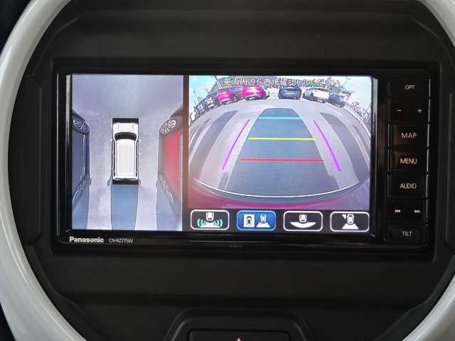 【360°ビューモニター】お車の死角になる部分、いわゆる前方、左右、後方をカメラで疑似的に上から見下ろす格好でモニターに映します☆これで安心して運転に集中できますね☆