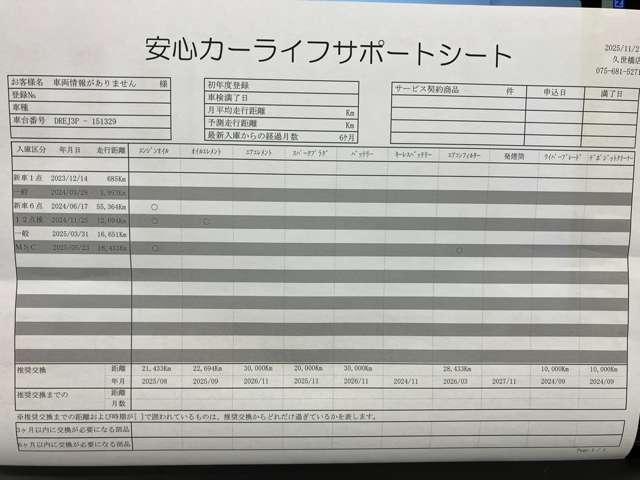 【安心カーライフサポートシート】京滋マツダでは、ご安心いただけるよう、新車をご購入いただいてからの整備歴を明確にしています。