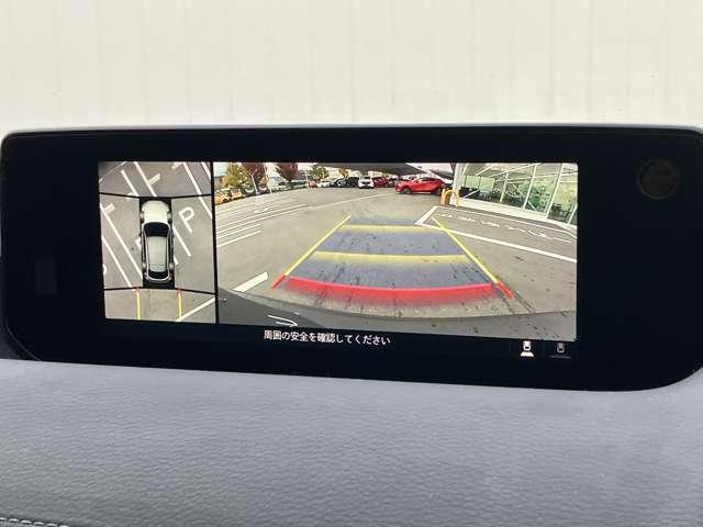 360°ビューモニターでは、両サイドとフロント、バックカメラの合成で、あたかも上空から見下ろした様に周囲を確認して頂けます。駐車場だけでなく、T字路等でも活躍のアイテムです!