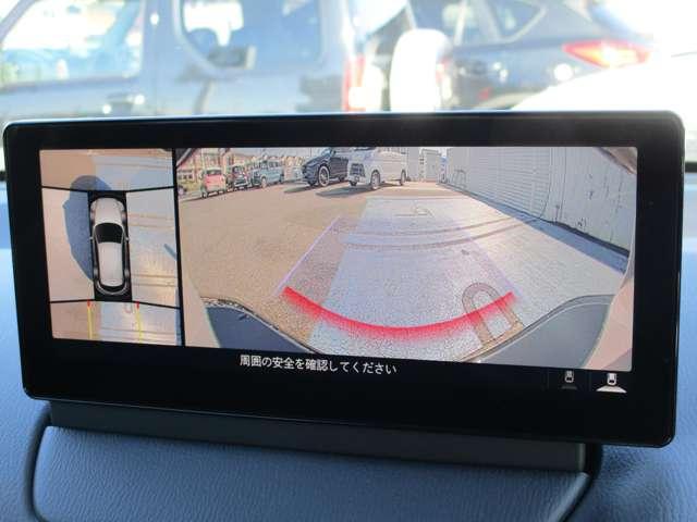 車両の前後左右にある4つのカメラを合成することで、まるでご自身のクルマを空から見ているような俯瞰での映像を映し出してくれます。バック時ももちろんのこと、前進時に視界の悪い交差点でも役に立ちますね。