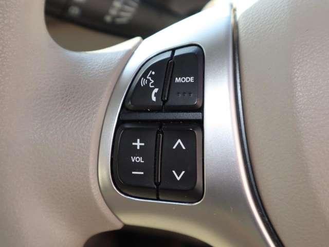 ステアリング左側にはオーディオコントロールスイッチを搭載。走行中でも簡単に音量の上げ下げ、曲の送り戻し、モードの切り替えが可能です。クイックに切り替えてお好みの音楽で楽しいドライブを!