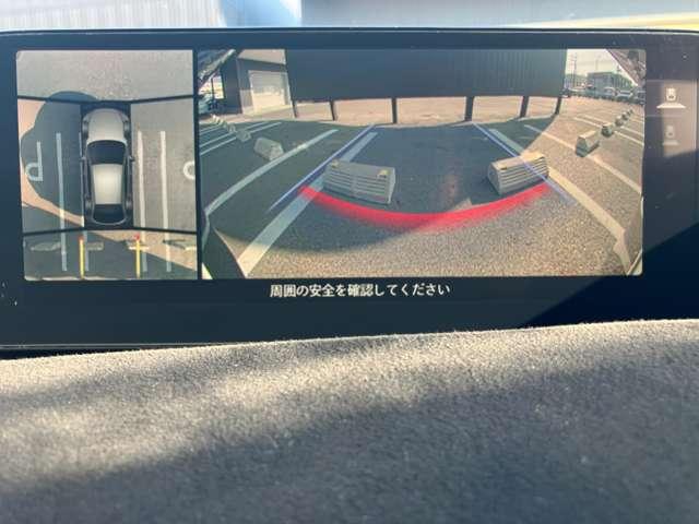 360度ビューカメラを搭載。4方の小型カメラの映像を処理し、車両真上からの映像に変換しています。