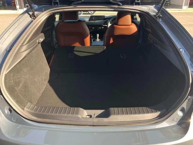 後席を全て倒して、荷物専用のスペースにした状態です。これなら長いものも積めますし、ご旅行や趣味に活用できますね。