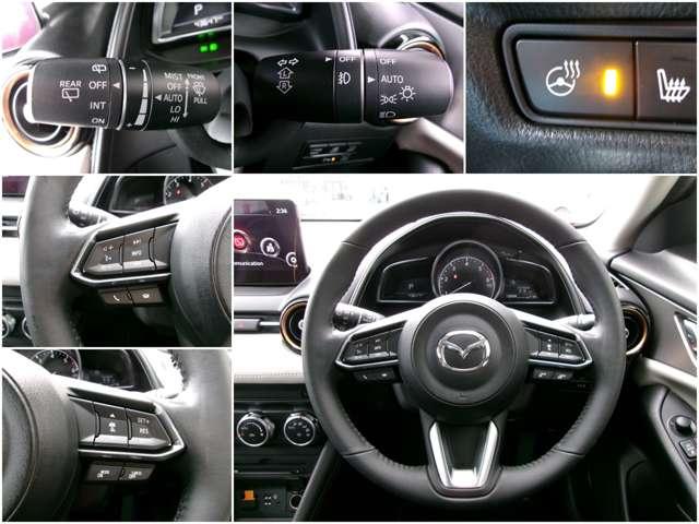 本革巻きステアリングには、便利なステアリングスイッチ装備♪ハンドルが冷たくて触りたくない。そんな時に活躍するステアリングヒーターも搭載です☆
