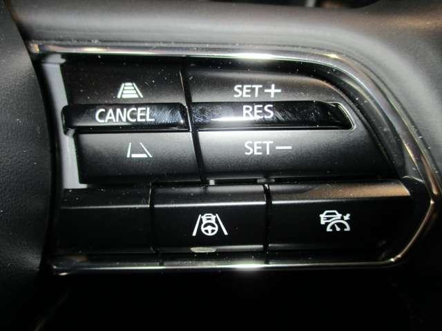 マツダクルーズコントロール、先行車との車間を維持しながら追従走行ができ、長距離走行などのドライバーの負担を軽減します。