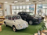 現在は懐かしの「スバル360」をフルレストアして展示しております。