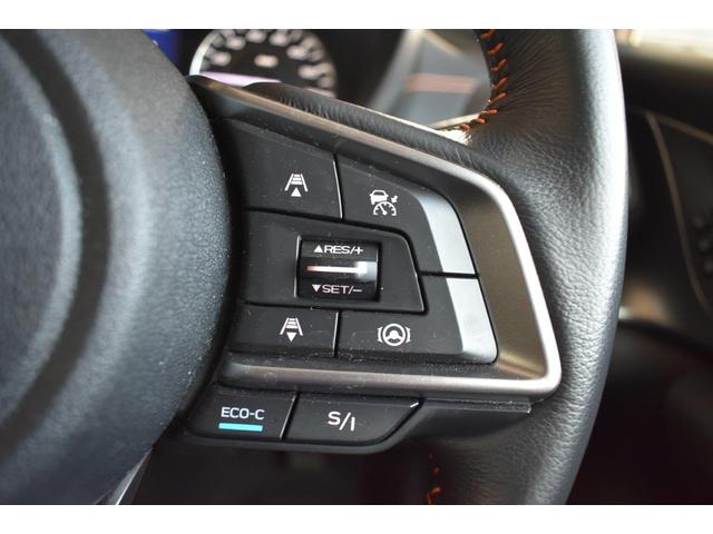 ステアリング右側に装備しているアイサイト・追尾スイッチ。こちらのスイッチにて高速走行時のアイサイト追尾巡航のON・OFFを行います。