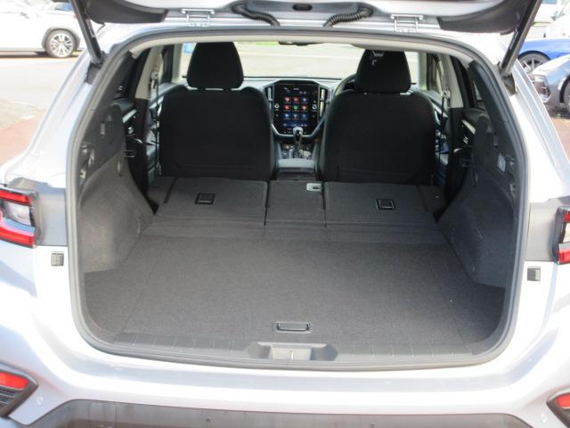 後部座席背もたれを、倒せば長尺物も積み込み可能です。釣りやゴルフなど幅広くお使いいただけます。また、長距離ドライブでの仮眠や車中泊も出来、疲労軽減に活躍してくれます。