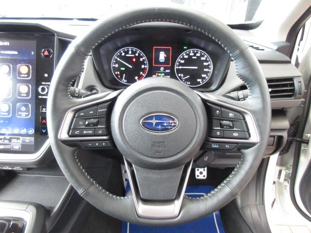 本革巻ステアリング!!オーディオ&ナビとアイサイトの操作もステアリングスイッチで操作できます!アイサイトの追従速度や車間距離の変更できます!!