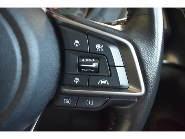 ステアリング右側に装備しているアイサイト・追尾スイッチ。こちらのスイッチにて高速走行時のアイサイト追尾巡航のON・OFFを行います。