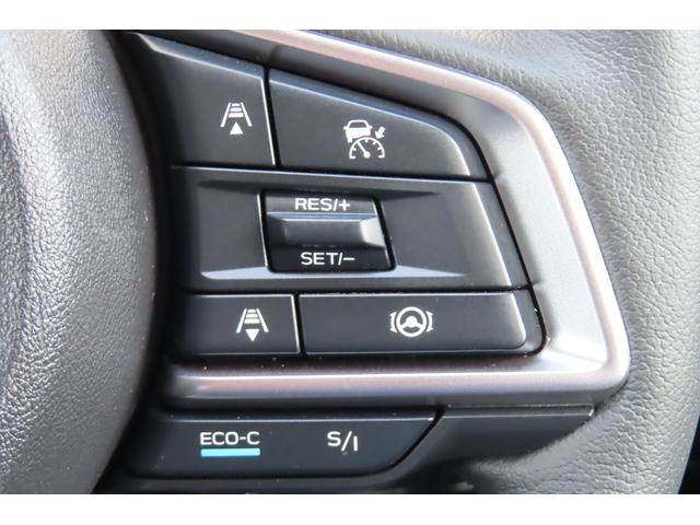 アイサイトの運転支援機能、クルーズコントロールのボタンです。前の車についていく機能や、一定の速さで走行する機能、車線をはみ出さない機能等有ります。