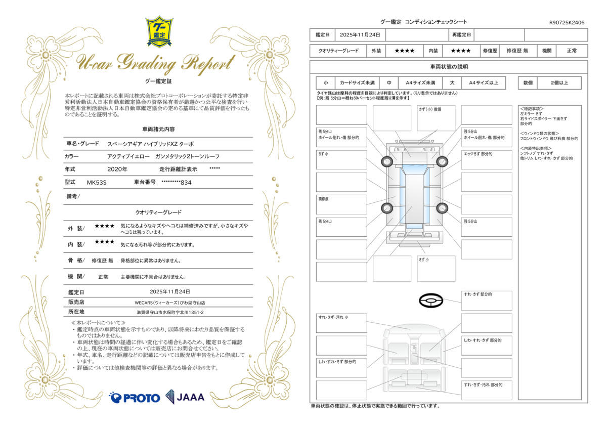 | 車台番号下3桁 | 834 | 全体のサイズ | - / - / - |