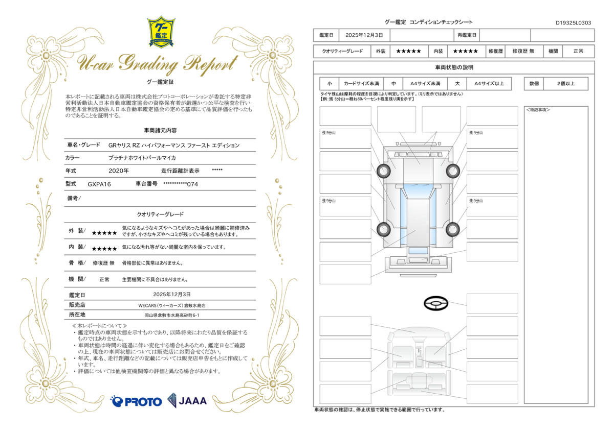 | 車台番号下3桁 | 074 | 全体のサイズ | - / - / - |