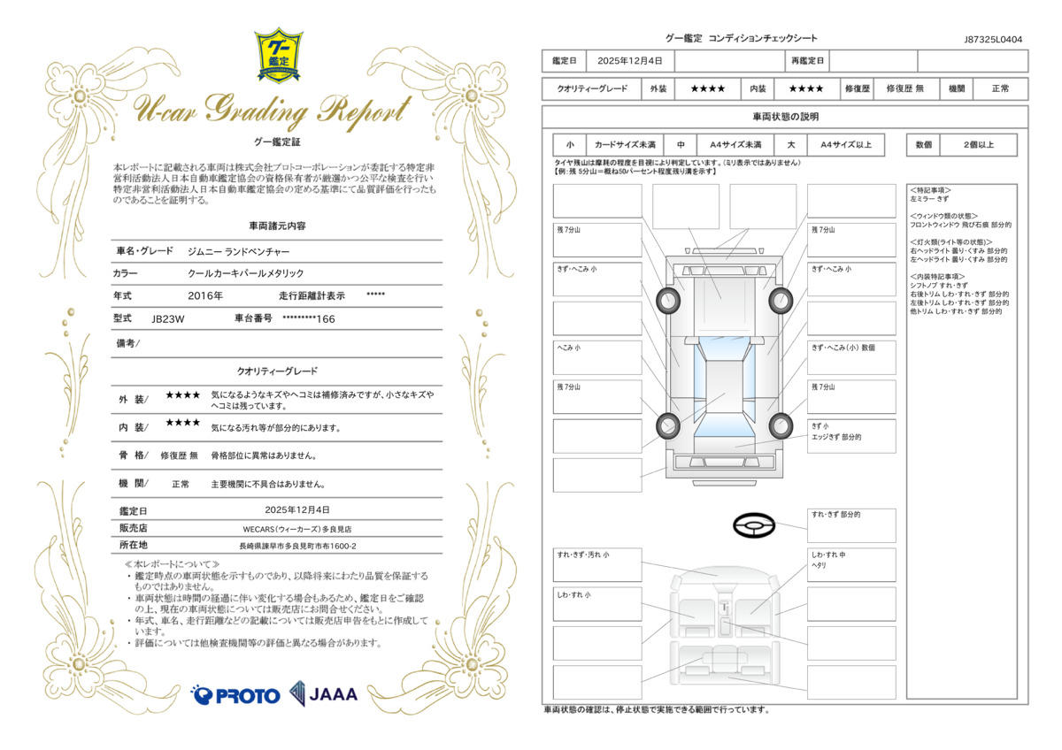 | 車台番号下3桁 | 166 | 全体のサイズ | - / - / - |