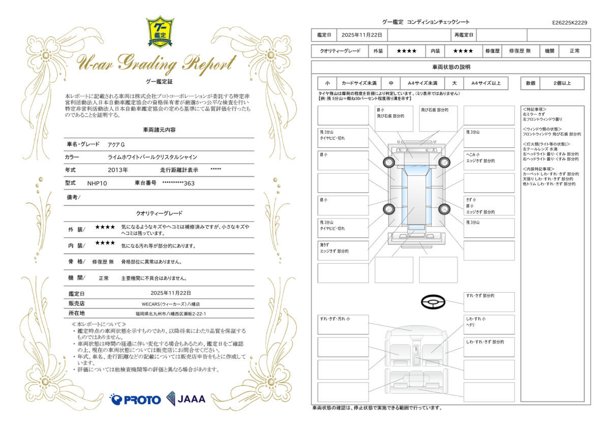 | 走行距離 | 7.4万km | 修復歴 | なし |
