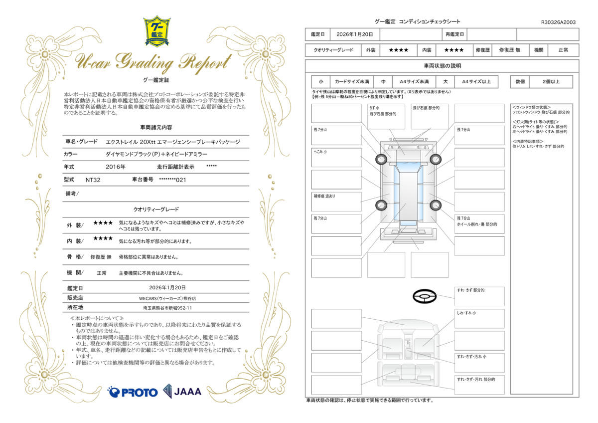 | 走行距離 | 3.1万km | 修復歴 | なし |