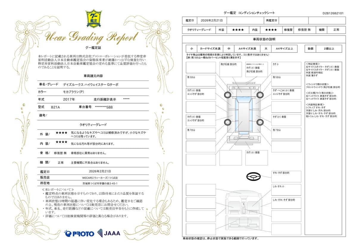 | 内容 | 納車後1カ月・1000km無料保証!さらに、選べるWE!保証(1・3・5年プラン)もご用意。最大36機構・343項目対応、全国240店舗で安心サポート! |