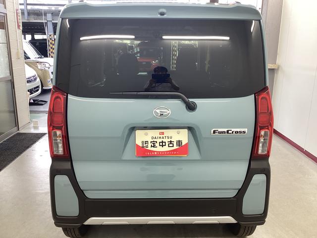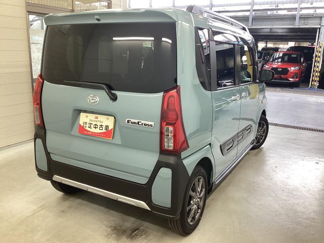 ダイハツ タントファンクロス 衝突被害軽減ブレーキ 横滑り防止装置 オートハイビーム アイドリングストップ ステアリングスイッチ オートライト キーフリーシステム オートエアコン パノラマカメラ マット バイザー
