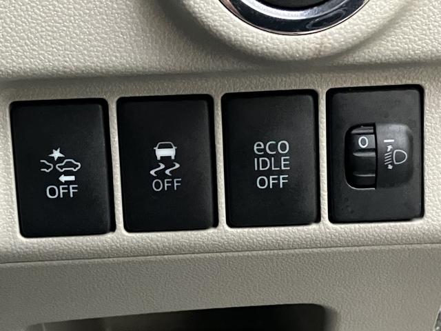 運転席横にあるスイッチ類です。スマートアシストやアイドリングストップ、横滑り防止機能をOFFにするもの、オートハイビーム機能をONにするものです。