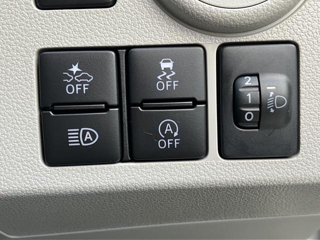 運転席横にあるスイッチ類です。スマートアシストやアイドリングストップ、横滑り防止機能をOFFにするもの、オートハイビーム機能をONにするものです。