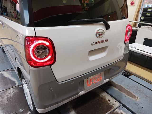 ダイハツ ムーヴキャンバスストライプスG 走行7672キロ/9型ディスプレイオーディオ 1年保証距離無制限 走行距離7672キロ ディスプレイオーディオ バックカメラ LEDヘッドランプ アイドリングストップ 両側電動スライドドア オート格納式ドアミラー プッシュボタンスタート