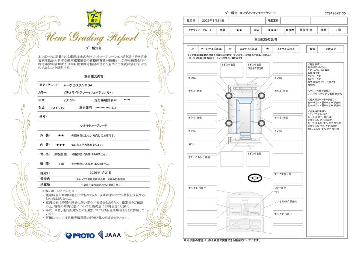 | 走行距離 | 4.2万km | 修復歴 | なし |