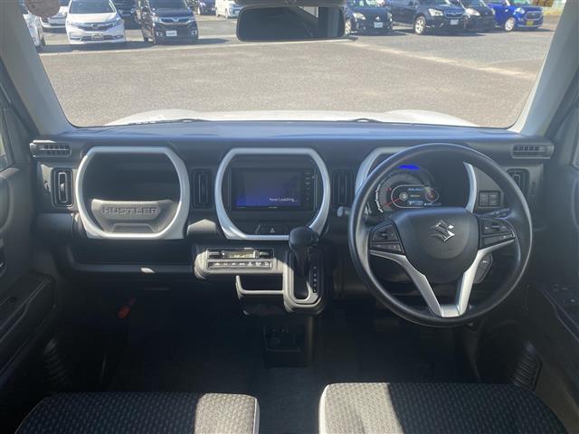 スズキ ハスラーハイブリッドG 社外ナビ・AM/FM/CD/DVD/BT・フルセグTV衝突軽減ブレーキレーンキープアシストオートライトレーダークルーズコントロール前席シートヒーター純正アルミホイール電動格納ミラープッシュスタート