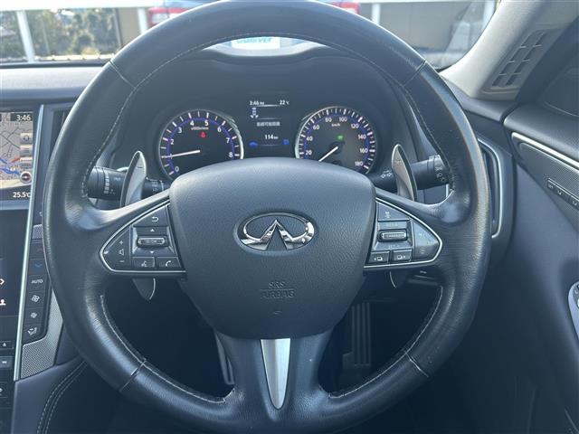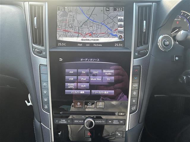 日産 スカイライン350GT ハイブリッド タイプSP 純正メモリナビ(AM、FM、フルセグTV、BT、USB) 黒レザーシート 前席シートヒーター ステアリングスイッチ クルコン追従あり パドルシフト 前席パワーシート 純正フロアマット 電動リアゲート