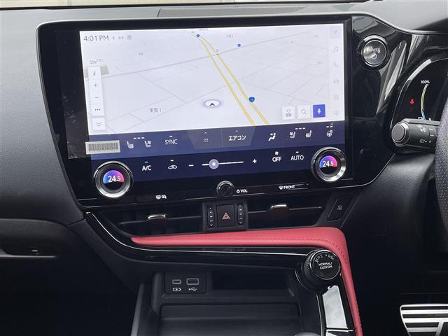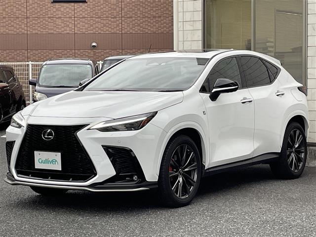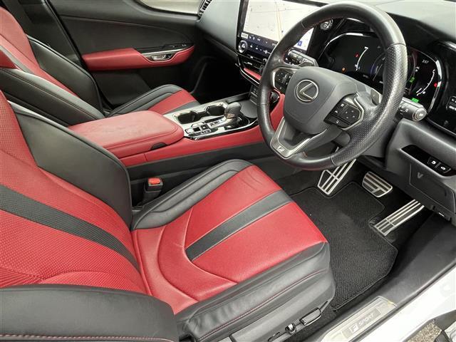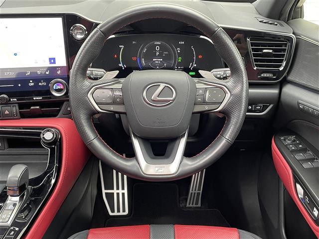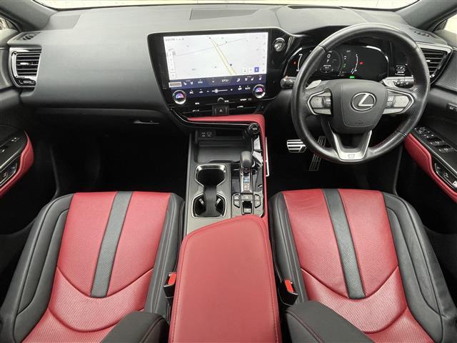 レクサス NXNX450h+ Fスポーツ ワンオーナー/PHEV充電ケーブル積/ムーンルーフ/純正14インチディスプレイオーディオナビTV/パノラミックビューモニター/デジタルインナーミラー/ブラインドスポットモニター/黒赤レザー/純20AW