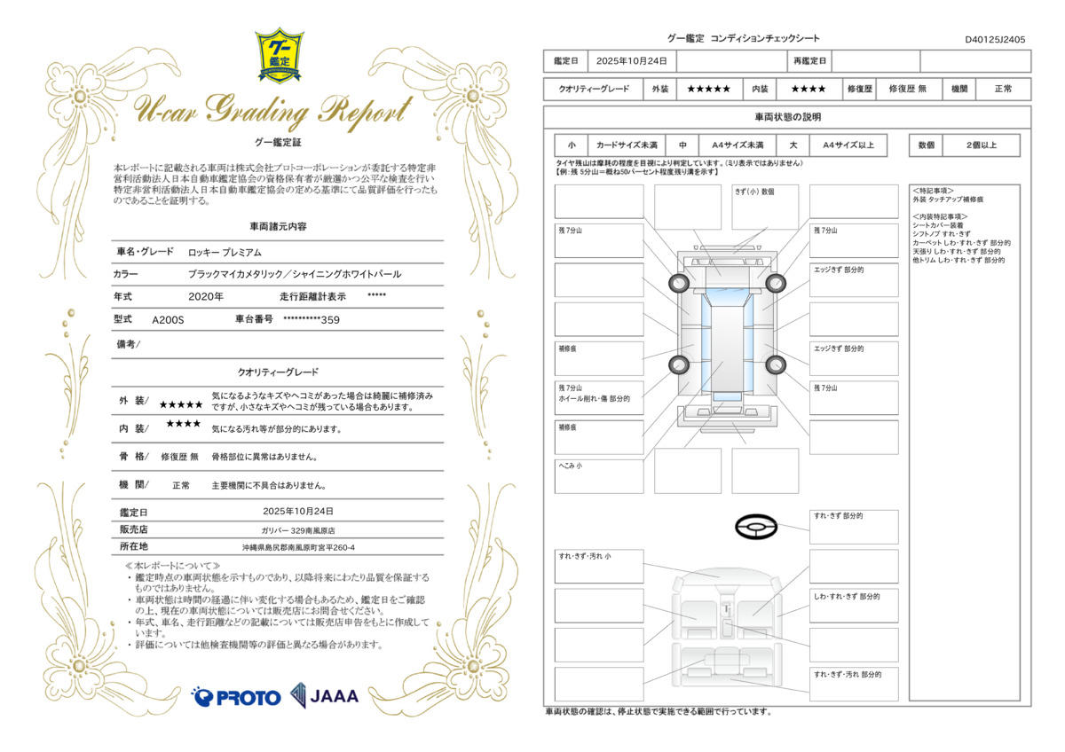 | 走行距離 | 2.7万km | 修復歴 | なし |