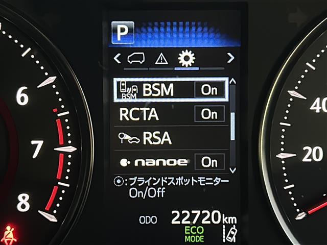 【ブラインドスポットモニター(BSM)】ドアミラーでは確認しにくい、後側方エリアに存在するクルマや、急接近してくるクルマを感知してお知らせすることで、不意の衝突を回避をサポートします!
