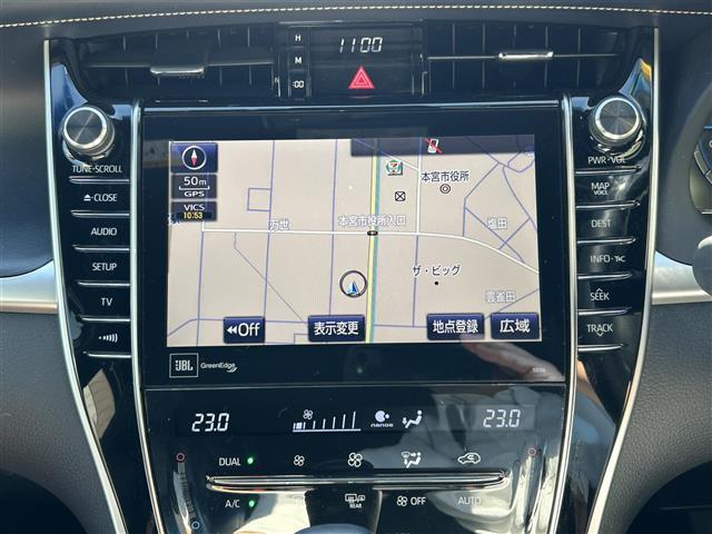 トヨタ ハリアーハイブリッドプログレス 1オーナー 4WD セーフティーセンス パワーシート パワーバックドア ハーフレザー 純正メモリナビ(フルセグ/DVD/SD/USB/BT)全方位カメラ クルコン ステリモ LEDライト 純正リモスタ